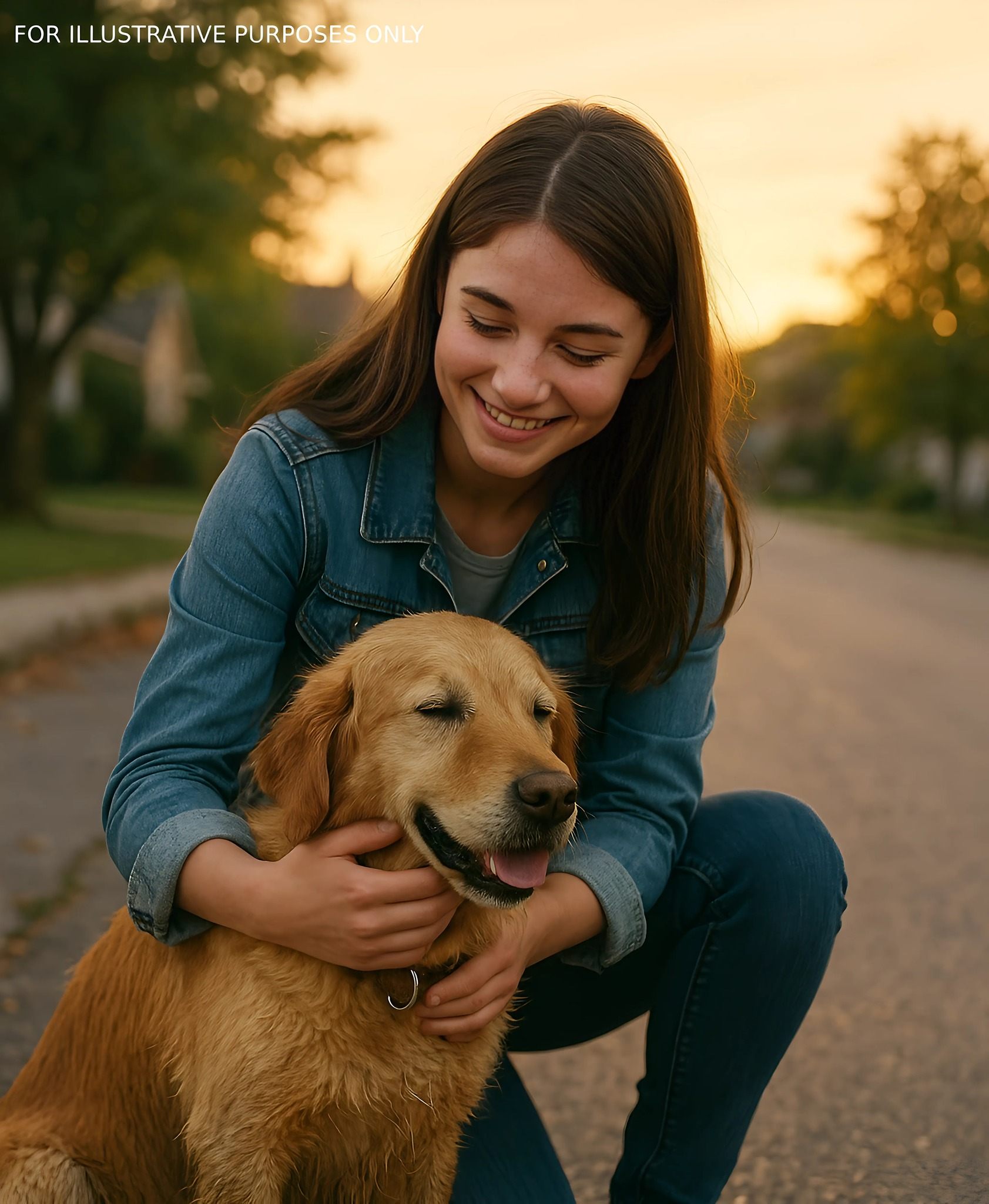Depois do pôr do sol, Maya, de 17 anos, viu um labrador dourado e peludo a vaguear na orla da floresta
