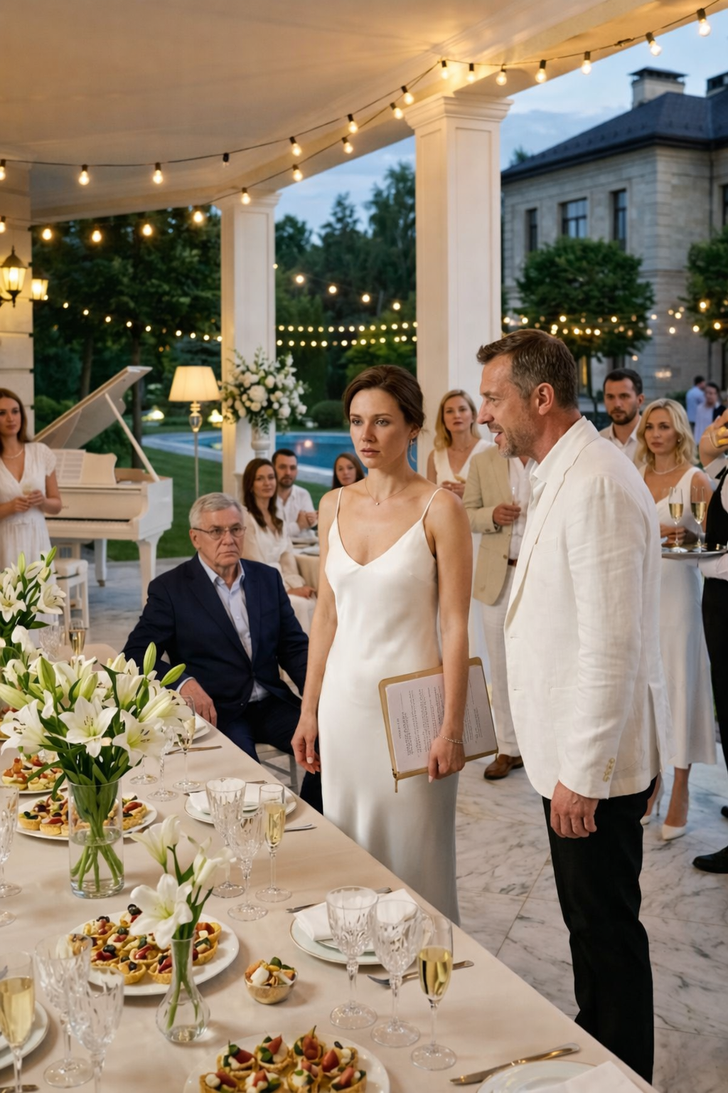 Eu estava de pé no meio de risadas que não eram minhas, sob luzes intensas e perfumes caros, e naquele