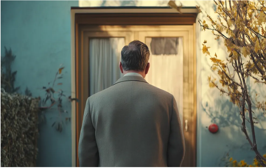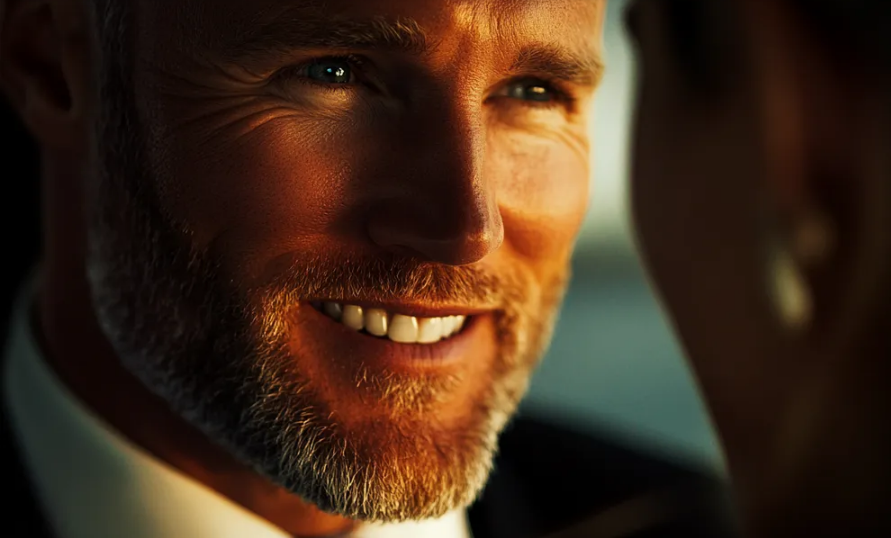 Quando a cabine finalmente ficou vazia, um homem alto de cabelos grisalhos entrou e seu olhar imediatamente se fixou em mim.