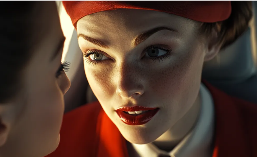 Após alguns minutos de voo, uma comissária de bordo simpática chamada Bethany se aproximou de mim com uma bandeja de bebidas.