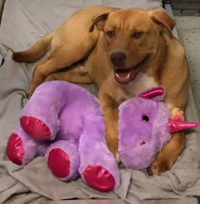A cadela estava disposta a tudo para conseguir aquele brinquedo, pois ela o adorava. Ele tentou cinco vezes pegar o unicórnio antes de chamar o serviço de controle de animais. Joe Newbern, gerente do serviço de controle de animais do condado de Duplin, disse que a cadela pegava sempre o mesmo unicórnio. Newbern considera esta chamada estranha. Foi uma das situações mais estranhas com que ele já se deparou. Ela ficou comovida quando a polícia Samantha Lane veio buscar o cachorro. Percebendo o quanto este brinquedo significava para ele, ela comprou um unicórnio para o sem-abrigo por 10 dólares do seu próprio bolso. Lane ficou com o coração partido ao ver o cão sem o seu brinquedo favorito. O seu gesto teve um enorme impacto na vida do cão. A generosidade e a compaixão de Lane permitiram que o cão sem dono finalmente se tornasse dono do seu unicórnio favorito. Esta história comovente conta a relação entre um cão sem dono e o seu unicórnio.