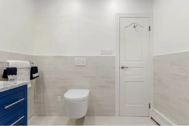 Antes que eu pudesse perguntar, ela sorriu rapidamente para mim e levantou-se. «Volto já», disse ela, «só preciso de ir à casa de banho».