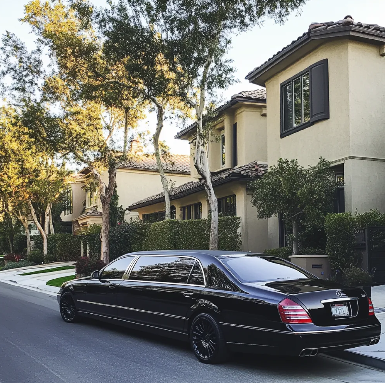 Em frente à nossa casa estava estacionada uma limusina preta brilhante.