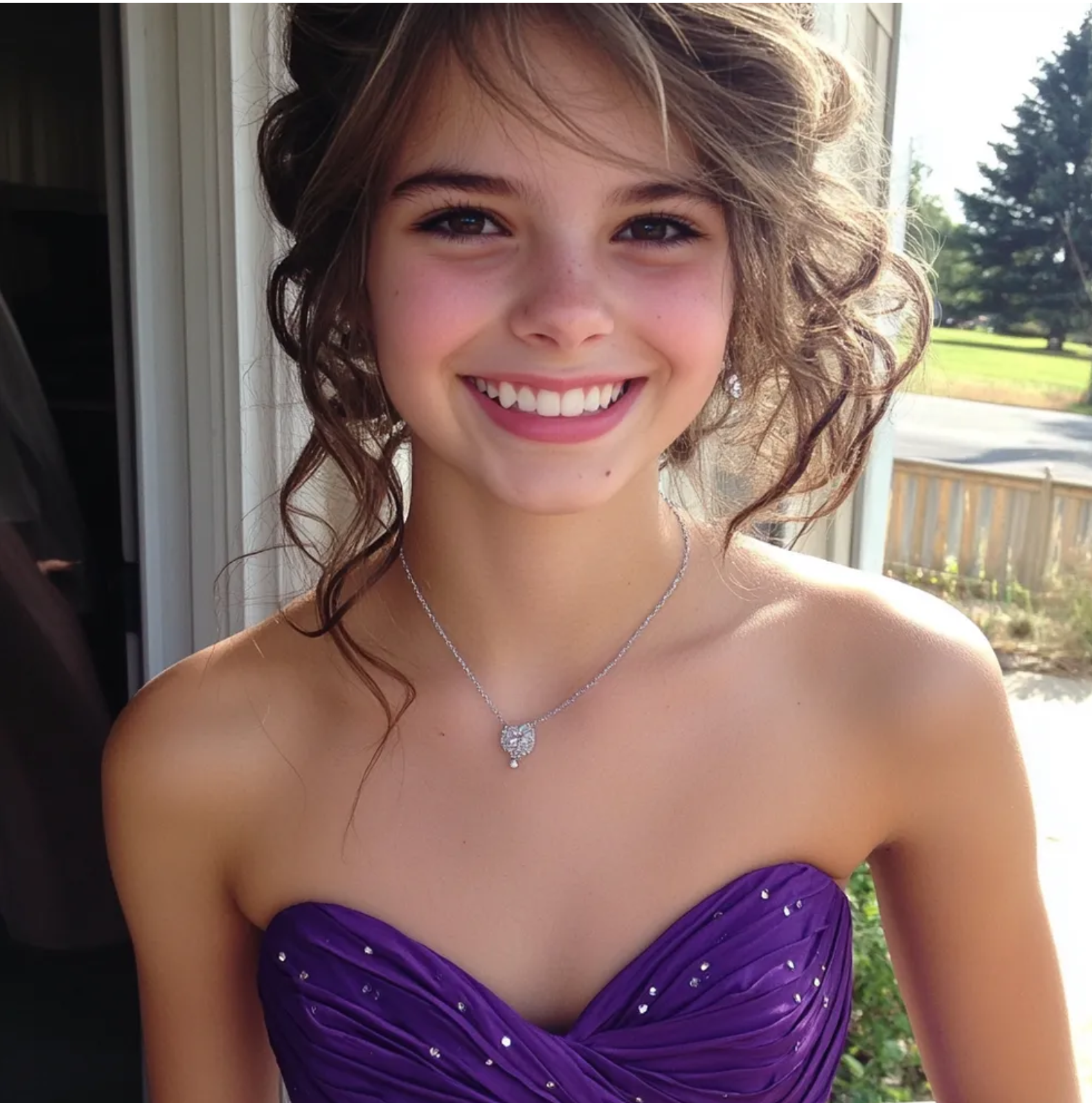 De qualquer forma, chegámos à formatura. Como todas as outras raparigas da minha turma, eu sonhava com uma noite perfeita. Durante vários meses, poupei dinheiro da babysitter para comprar um lindo vestido roxo.