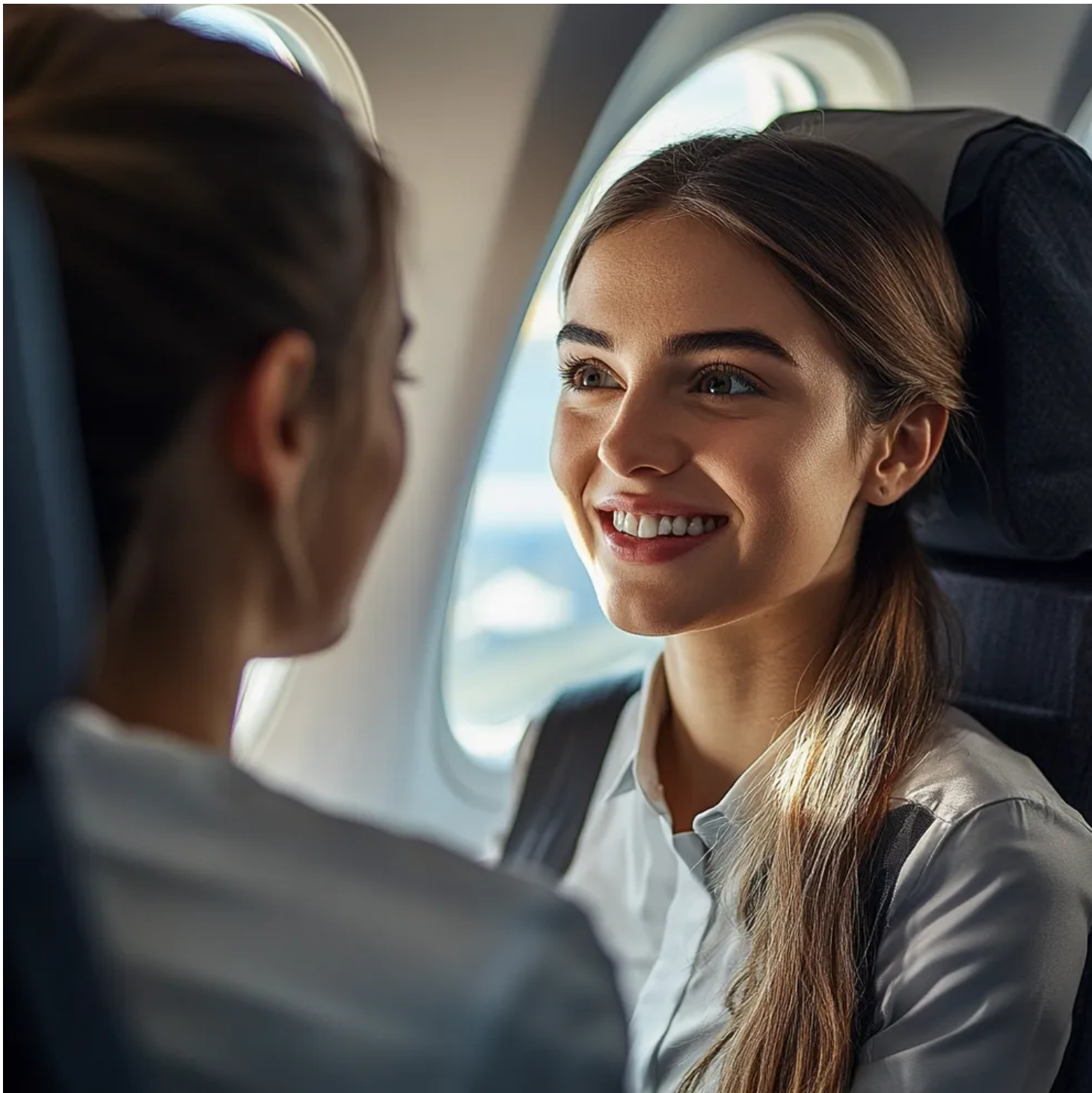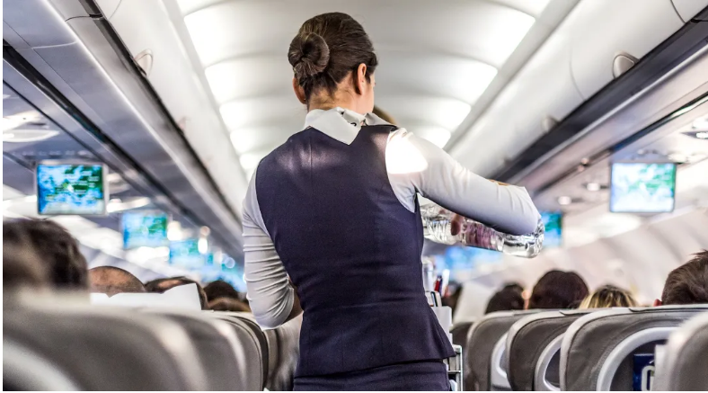 A comissária de bordo acenou com a cabeça. «Vou dar-vos um pouco de tempo, pessoal», sorriu ela e dirigiu-se para a parte de trás do avião.
