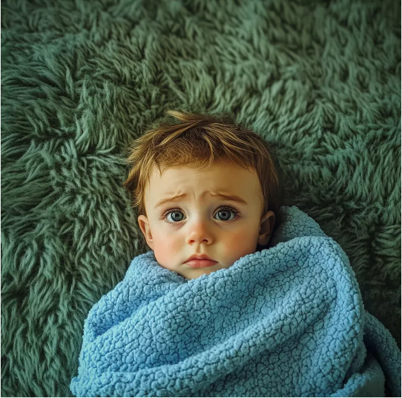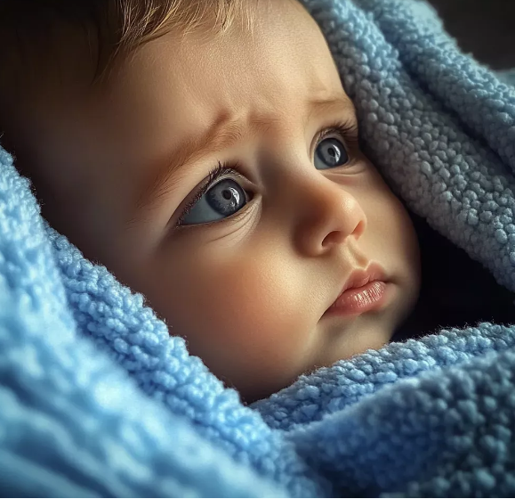 Ela se virou, os olhos arregalados de medo. A criança parecia assustada, mas não chorava.