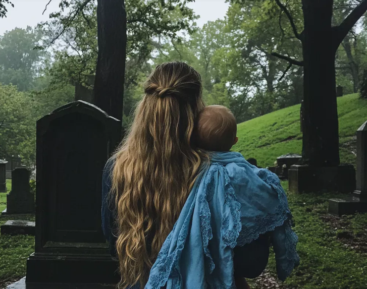 Ela estava ao lado do túmulo de James com uma criança no colo, colhendo lírios frescos que eu havia plantado há algum tempo. Fiquei sem fôlego ao vê-la colocando os caules em um saco plástico.