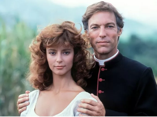 Na foto, a atriz está ao lado de Richard Chamberlain.