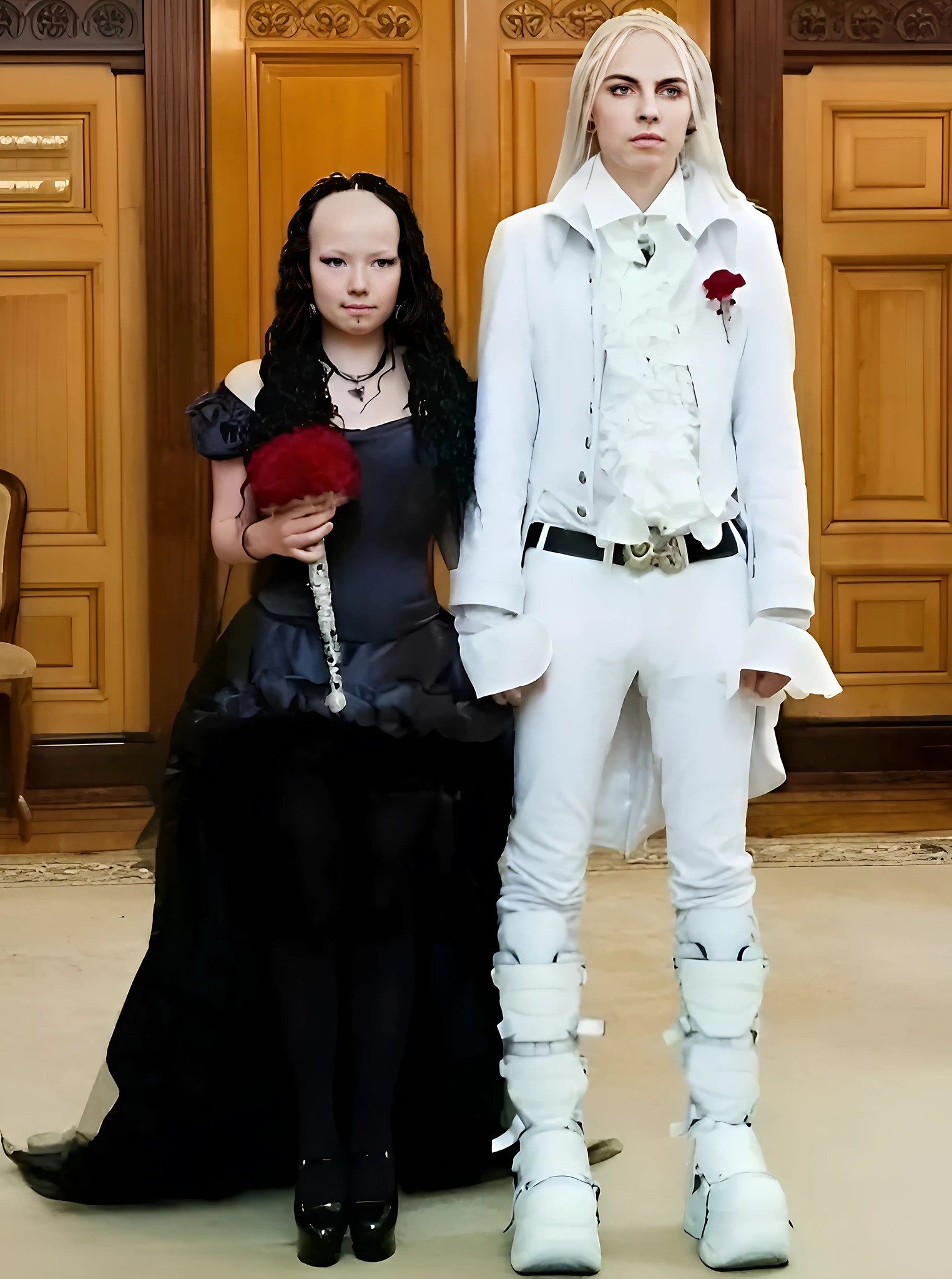 Eles eram completamente normais, apesar da aparência e dos trajes incomuns durante a cerimónia de casamento, realizada há muitos anos. Na época, os convidados ficaram chocados com a aparência do noivo e, principalmente, da noiva.