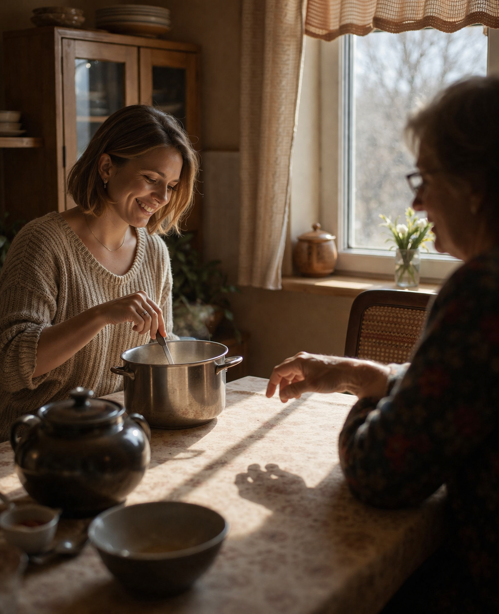 Ela acenou com a cabeça, satisfeita, e voltou a comer.