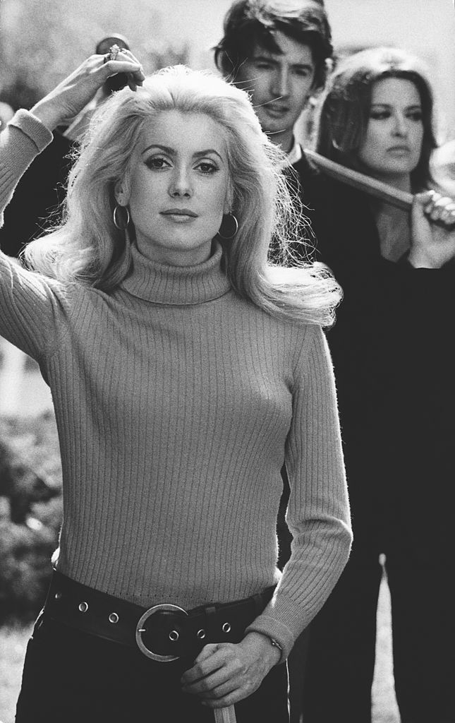 Catherine interpretou a jovem e bela amante de Charles, um empresário rico e bondoso. Nesta foto icónica, Deneuve personifica o espírito do final dos anos 60 — uma jovem alegre e ousada, com longos cabelos louros, sorrindo com confiança, olhando para o futuro.