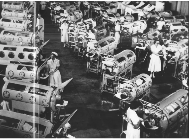 Para os pacientes mais graves, a sobrevivência muitas vezes significava ficar confinado a um «pulmão de aço» — um respirador mecânico que os mantinha vivos, bombeando ar para os pulmões paralisados. Os hospitais ficavam cheios de fileiras dessas máquinas cilíndricas, cheias de crianças lutando pela vida. Uma única imagem desses «pulmões mecânicos» é suficiente para transmitir o efeito devastador da poliomielite, uma lembrança arrepiante do medo e da incerteza que tomaram conta das famílias antes do advento da vacina, em 1955.