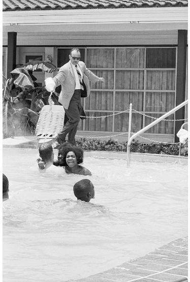 Em 1964, uma fotografia arrepiante capturou o gerente do motel James Brock a despejar ácido clorídrico na piscina do Monson Motor Lodge para impedir que nadadores negros a usassem.
