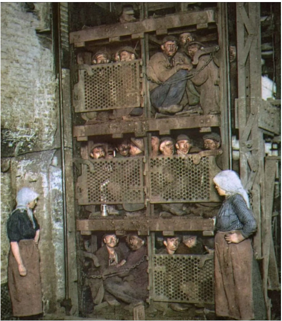 No início da década de 1920, os mineiros de carvão belgas passavam por dias difíceis debaixo da terra, trabalhando em condições perigosas para fornecer combustível à crescente revolução industrial. Após várias horas de trabalho exaustivo na escuridão, eles se amontoavam num elevador lotado e finalmente saíam à luz do dia. O rangido do elevador e o murmúrio das suas vozes mostram o quanto eles dependiam uns dos outros.