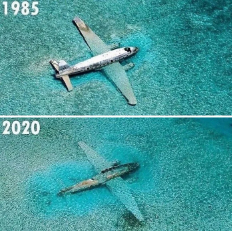 O avião caiu na região das Ilhas Bahamas em 1988. Agora, está assim.