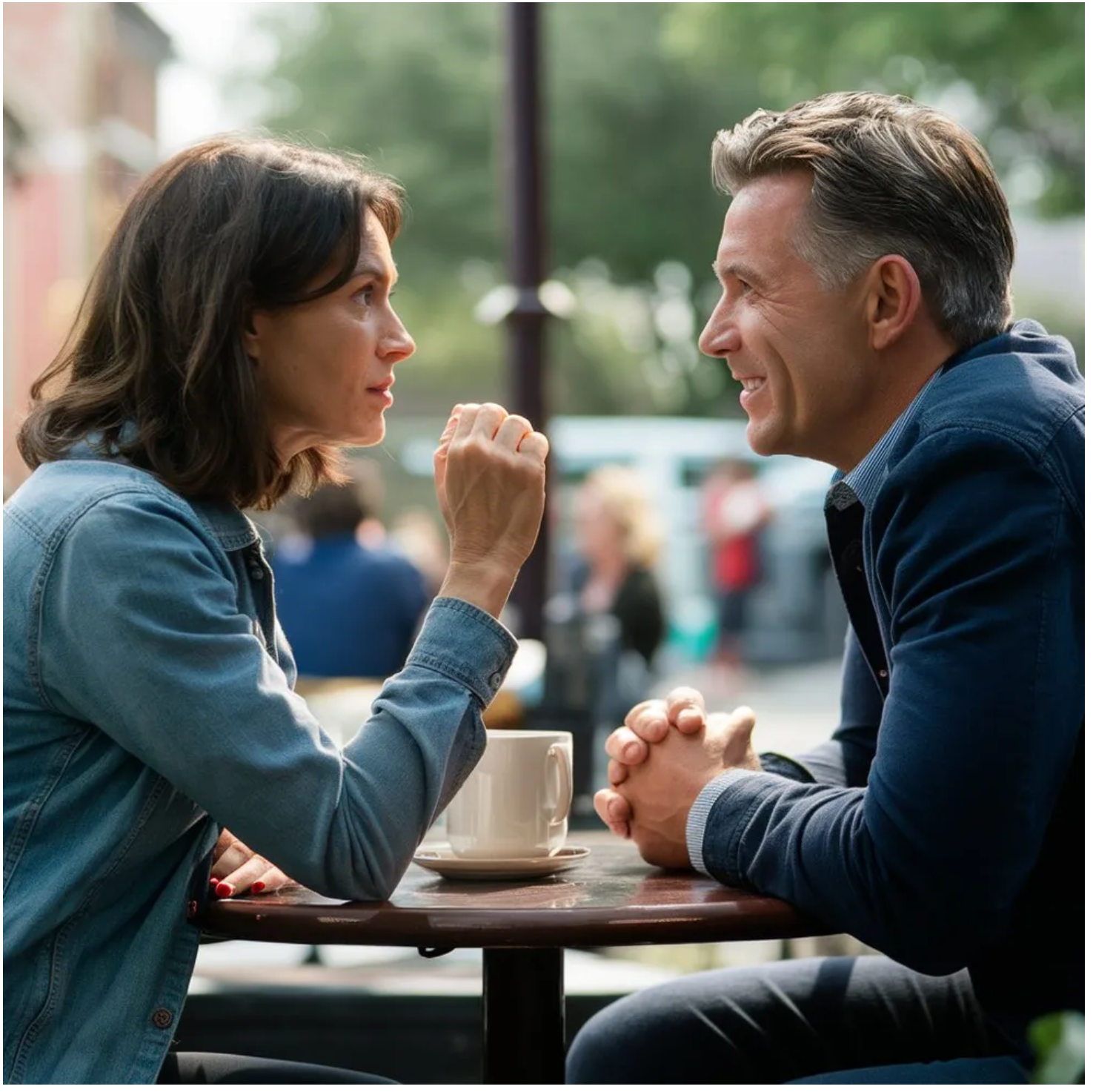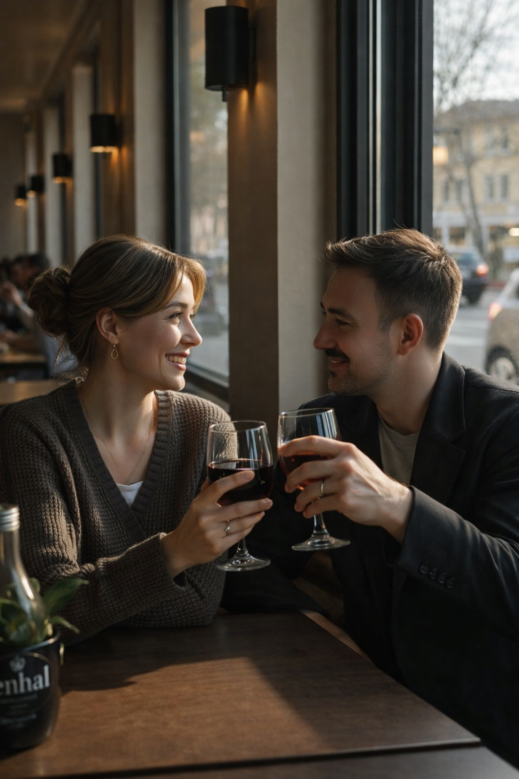 Combinámos encontrar-nos num pequeno café, um daqueles locais acolhedores com iluminação suave e decoração vintage.