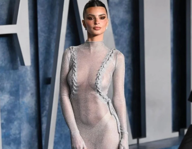 Emily Ratajkowski chamou a atenção na festa da Vanity Fair Oscar Party em 2023.
