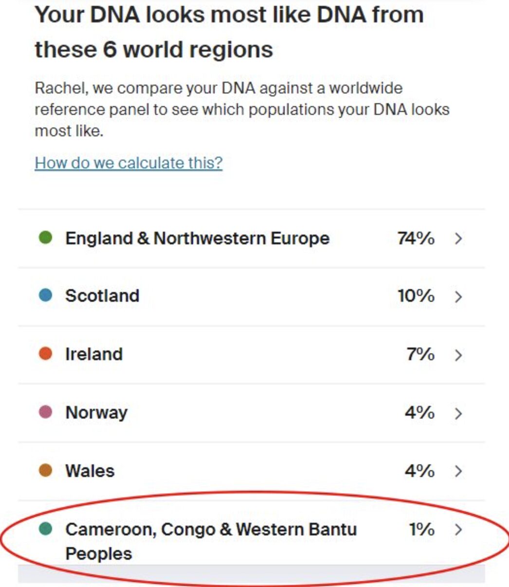 Depois disso, Rachel decidiu tomar o assunto nas próprias mãos e publicou no Facebook os resultados da suposta análise de ADN para provar a sua origem.