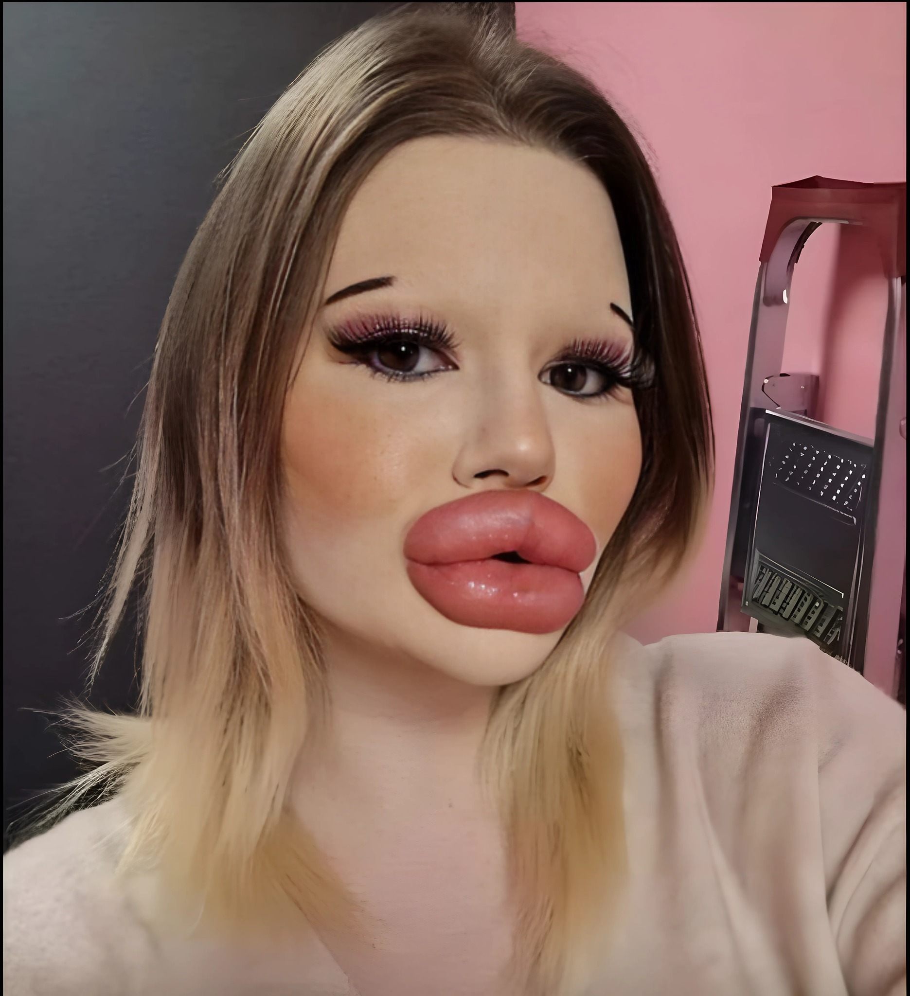 Ela ainda não tem o recorde mundial oficial, mas acredita ter «os lábios mais grandes do mundo».