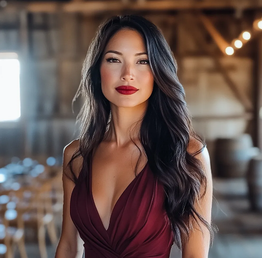 Os seus saltos batiam no chão durante os passos lentos e calculados. Ela era deslumbrante. O cabelo longo e escuro caía em cascata sobre um ombro, os lábios estavam pintados com um vermelho forte e ousado.