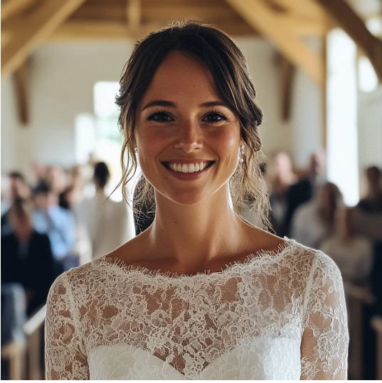 Eu estava sentada em frente ao espelho, passando os dedos pela renda do vestido de noiva, seguindo os delicados padrões florais bordados no tecido.