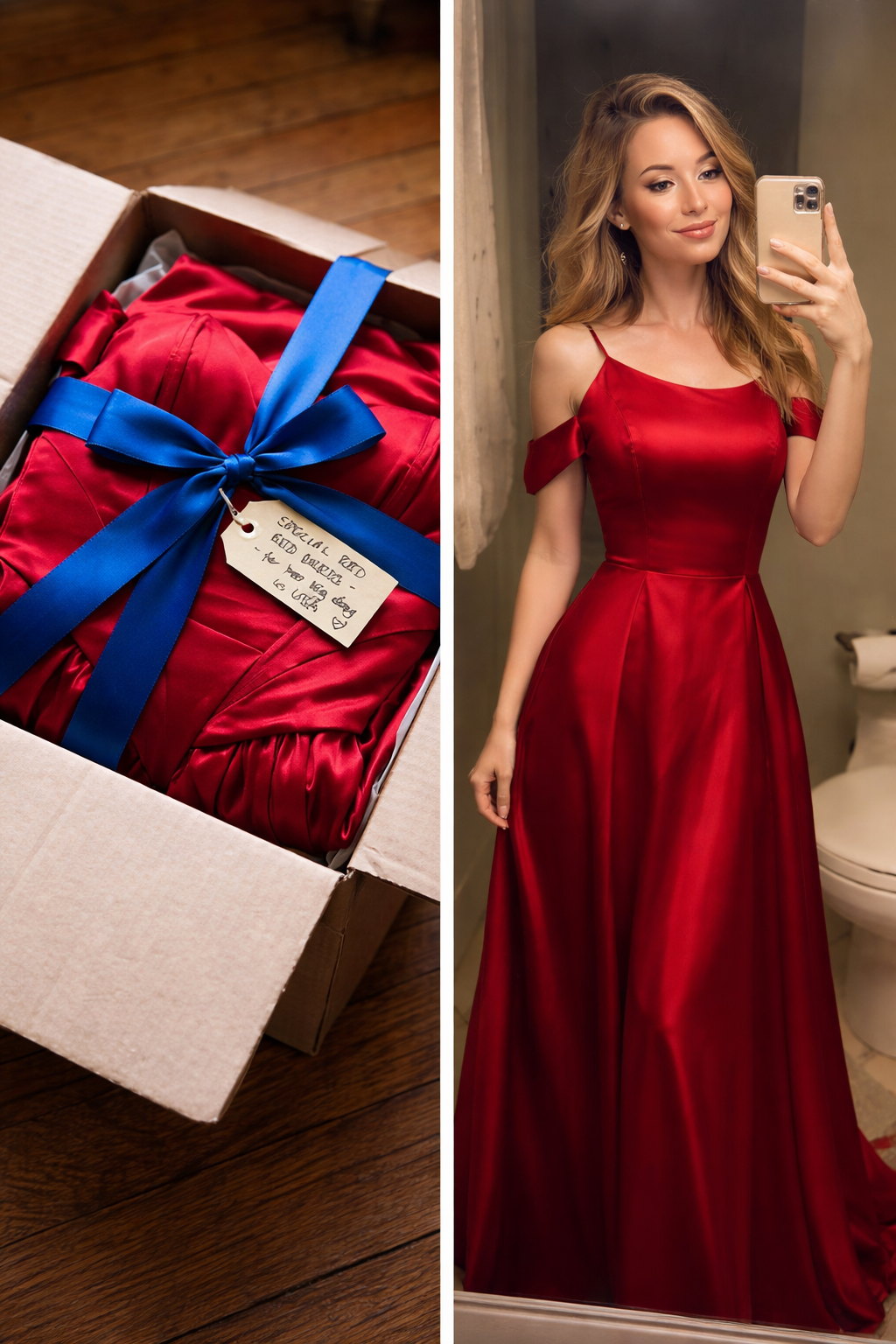 Sem excessos. Sem espetáculo. Apenas linhas simples, tecido suave, o vento no véu e um rosto sereno a refletir-se no espelho.