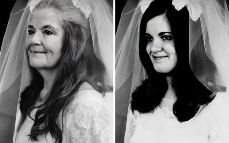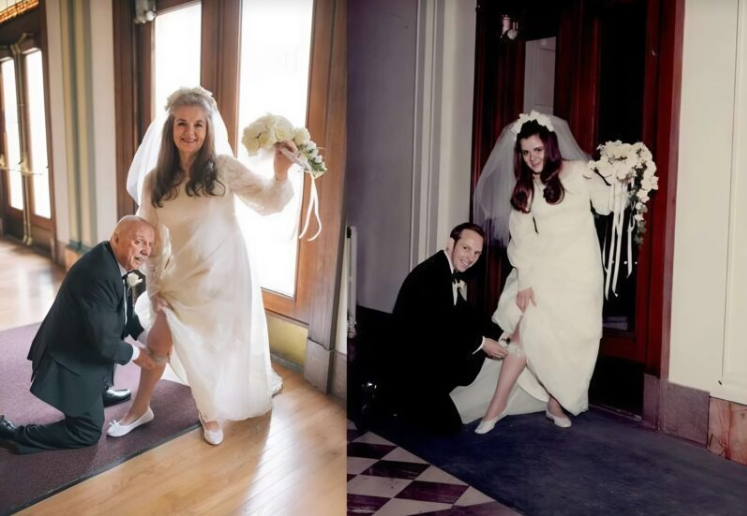 Há meio século, eles se conheceram e, desde então, caminham pela vida de mãos dadas, sem se separar. Ao longo desses anos, tiveram três filhos e agora já têm quatro netos. No seu dia especial, decidiram recriar as fotos do casamento. Fizeram uma sessão fotográfica com os seus trajes de casamento.