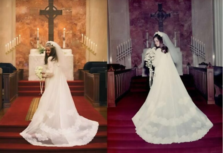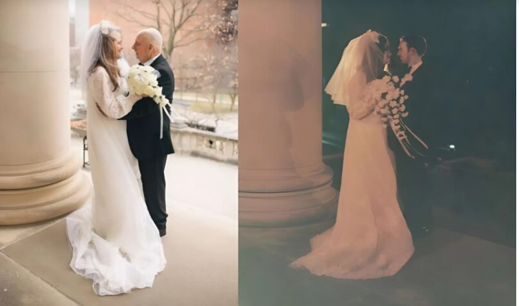 Ao rever as fotos recebidas, Caroline disse que não pensava que poderia usar um vestido de noiva. Agora, ela sente-se novamente com 25 anos. O marido, abraçando-a pelos ombros, disse que, para ele, ela sempre será como no dia do casamento.