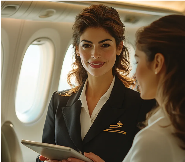 Após cerca de uma hora de voo, quando o salão estava tomado por um murmúrio agradável de conversas baixas e o som esporádico de copos a tilintar, chamei a comissária de bordo que tinha falado comigo anteriormente. Ela aproximou-se e pedi para falar com o chefe de cabine.
