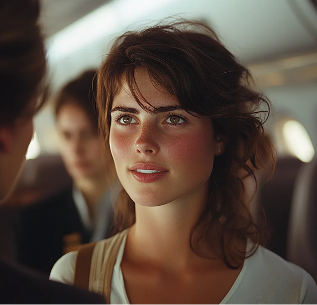 «Bom dia, senhora. Pelo que entendi, teve problemas com o seu lugar», disse a comissária-chefe, com uma voz profissional, mas calorosa.