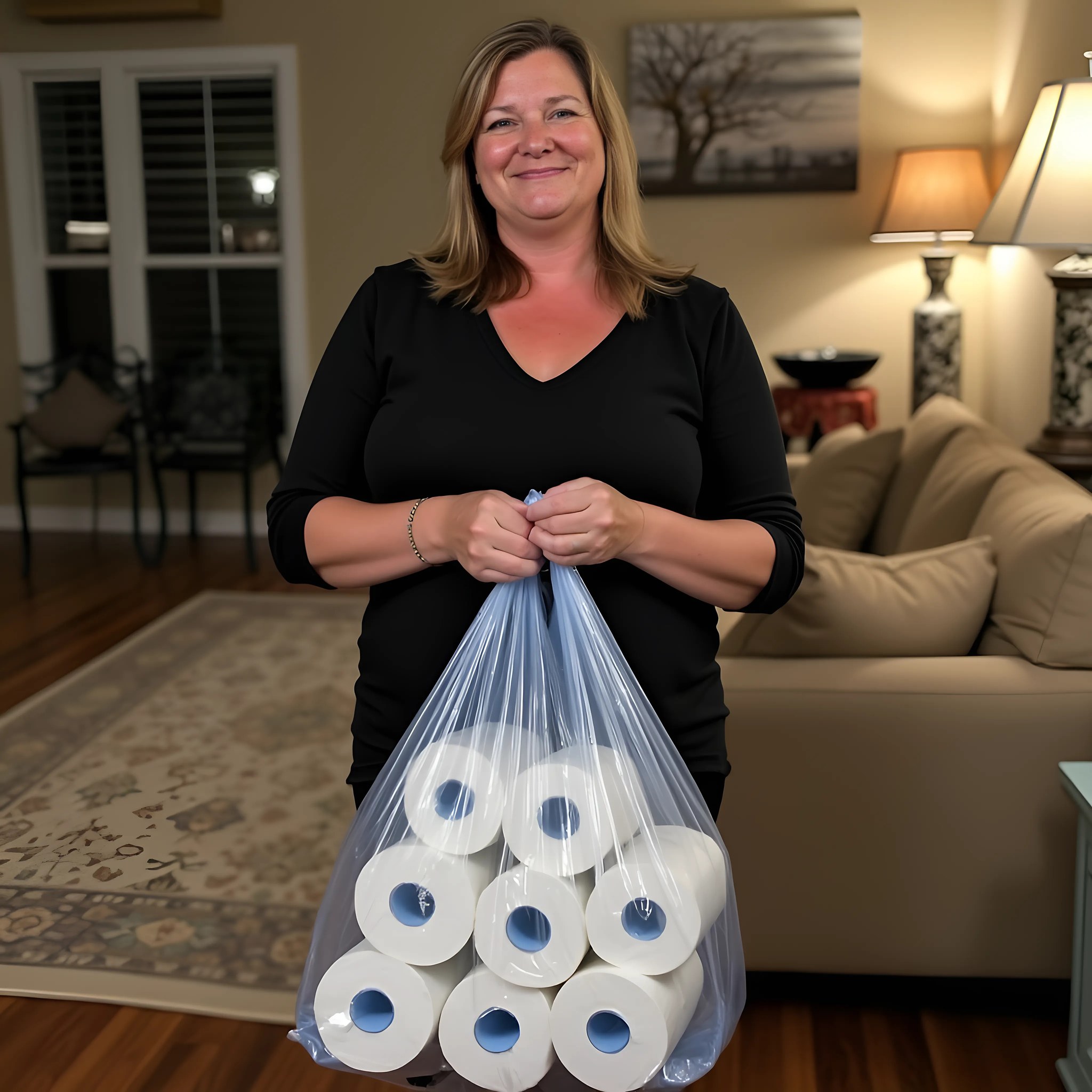 Ela desdobrou lentamente a embalagem, saboreando o momento… até ver que dentro havia papel higiénico. Uma embalagem com 12 rolos. Quatro camadas. Formato familiar.