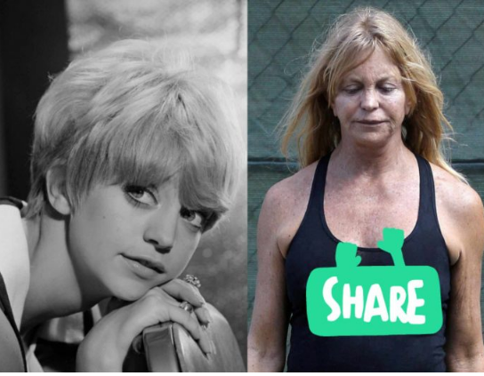 Atualmente, o rosto de Goldie apresenta rugas, contra as quais a atriz nada pode fazer. Além disso, nas fotos em que a celebridade aparece, também é possível notar várias manchas pigmentares, com as quais a mulher não conseguiu lidar. Talvez ela tente, às vezes, usar maquilhagem para parecer mais bonita, mas isso não melhora muito a situação. Não é de se admirar que, pela mesma razão, a atriz tenha encerrado recentemente a sua carreira, pois, com essa aparência, dificilmente alguém a deixaria atuar em filmes.