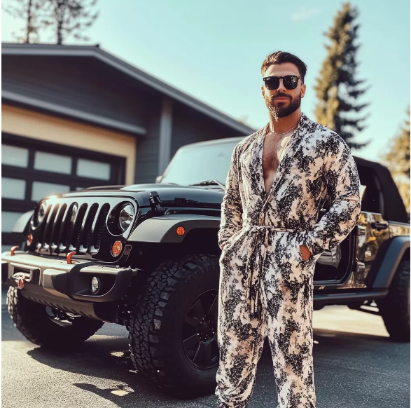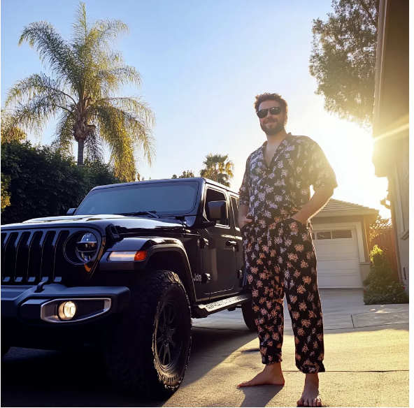 Na manhã seguinte, acordei com um plano. O Sr. Peterson não fazia a menor ideia do que o esperava. Espiei pela janela e, claro, lá estava ele, de pijama de seda, a polir cuidadosamente o seu jipe, como um possuído.