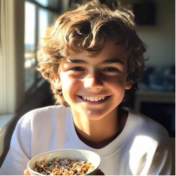 O meu filho sorriu para mim e acenou lentamente com a cabeça, antes de pegar nas batatas fritas.