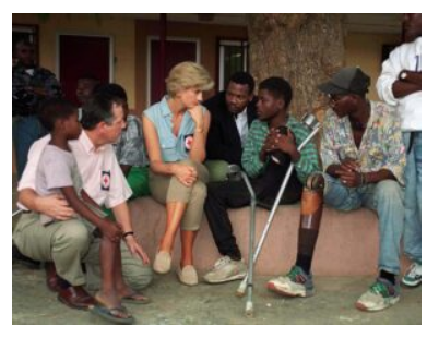 Talvez uma das fotos mais marcantes de Diana tenha sido tirada durante a sua visita a Angola em 1997. Sentada ao lado de sobreviventes de minas terrestres, ela ofereceu-lhes consolo e compaixão, usando a sua plataforma para chamar a atenção da comunidade internacional para o perigo das minas terrestres. Esse momento foi determinante para o seu legado: destemida, solidária e profundamente humana.
