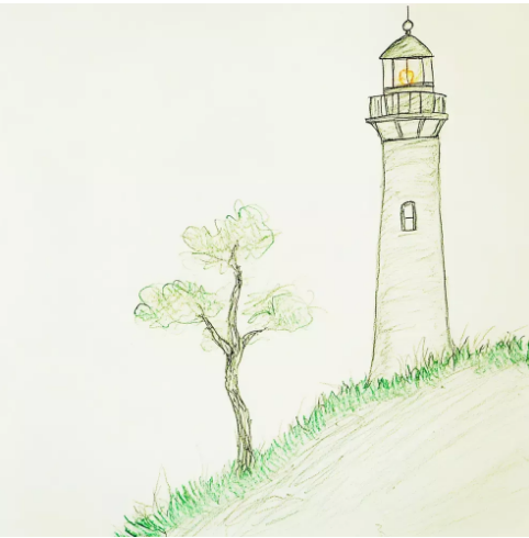 Olhei novamente para o desenho. Um farol simples, cuidadosamente sombreado a lápis, e uma única árvore ao lado dele. Essa árvore era a chave.