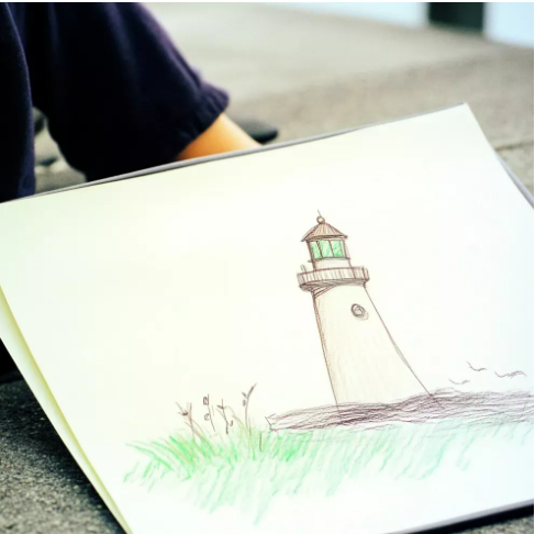 Desdobrei o papel. Um desenho simples. Um farol.