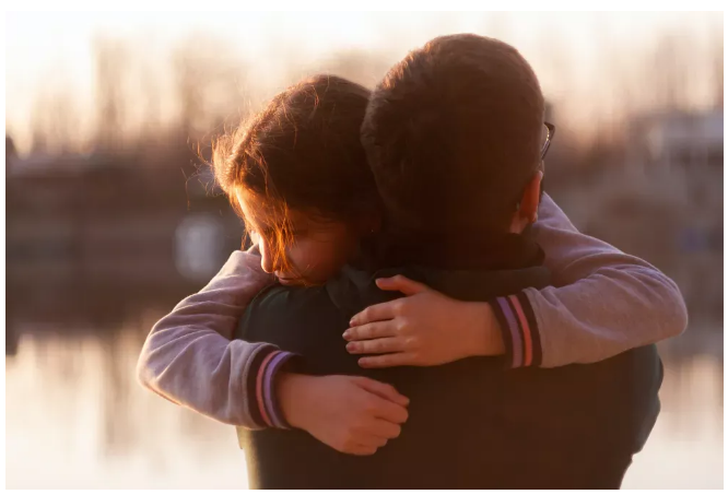 Brandon ajoelhou-se e abraçou os seus filhos.