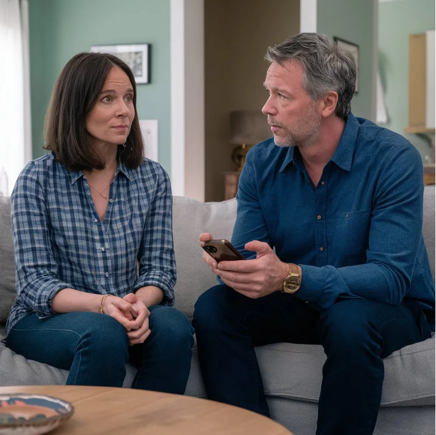 E tu achas normal transferir as responsabilidades de um filho para a esposa? perguntou ela, sem levantar a voz. Falas da tua mãe, mas esqueces-te de que ela também é tua. Ela tem um filho adulto, saudável, com tempo livre. Porque é que ele manda a mulher e fica ele no sofá?