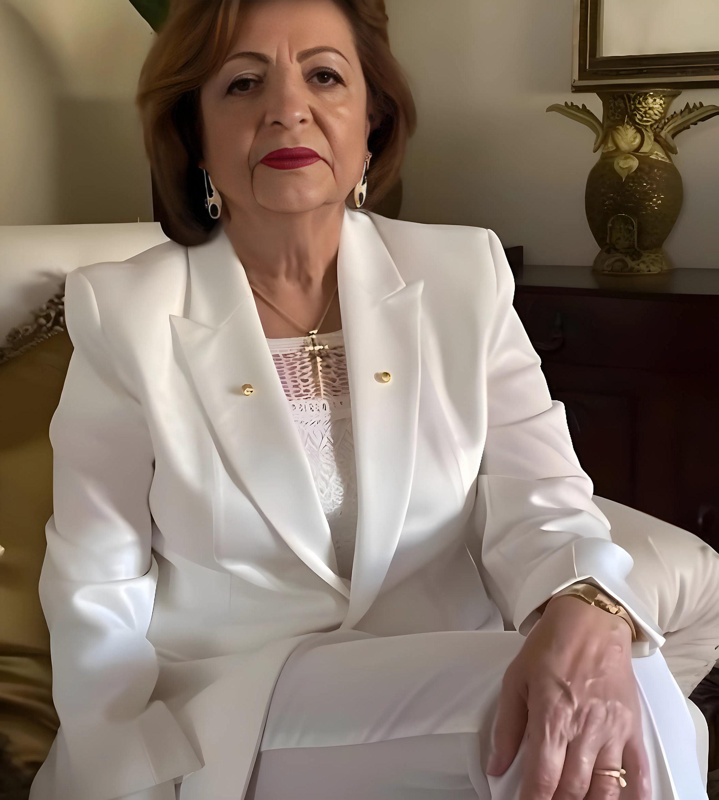 Era uma mulher de cerca de quarenta e cinco anos, com batom vermelho, saltos altos e uma energia nervosa.